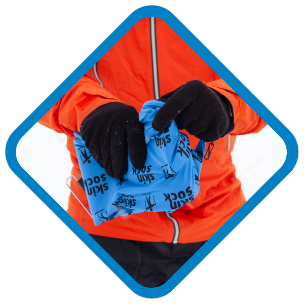 Sure! Just bend the end of your skin for some 20-40 cm before grabbing it with your SkinSock-wearing hand.